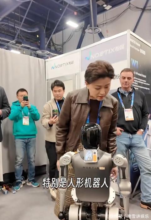 头发剪得挺短,看着干练。脖子上那个牌子晃来晃去,大概是上班要用的证件。杨女士整个人呢,和以前比是有点不一样了,体态没那么紧绷。她现在也不指着外形挣饭吃。人家有本事,懂里头那些门道。视频里头她领着我们转,看了好些机器人。有的在搬东西,有的在做别的活儿。